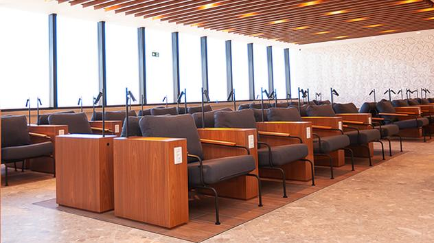 מחוץ לטרמינל – קחו את המעלית או את המדרגות מול שער עלייה למטוס 2 לקומה השנייה, שם נמצא הטרקלין. ליציאות לטיסות פנים בלבד. אזור ה-Plus בטרקלין זמין לכניסה במצב "כפי שהוא" ו"בהתאם לזמינות" ועלול שלא להיות זמין בכל התוכניות כרגע.