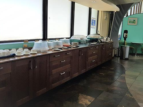 מחוץ לטרמינל - לאחר בדיקות הביטחון וביקורת הדרכונים, בין שערים 12 ו-13. הגישה באמצעות מעלית או במדרגות. יש לעקוב אחרי השלטים.