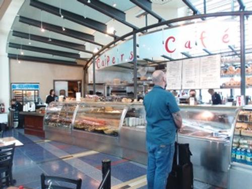 מייד לאחר סינון הבטחון, בצד שמאל. שימו לב שהמסעדה עשויה לעתים לחרוג ממגבלת המושבים שלה בזמנים מסוימים ביום, והכניסה למסעדה תלויה בהחלטתם בלבד.