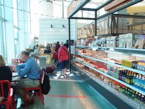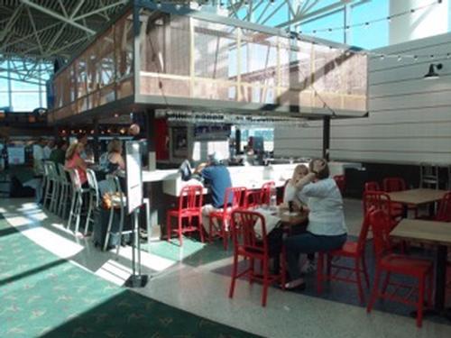 בשטח המוצנע – מיד אחרי הבידוק הביטחוני. שימו לב שהמסעדה עלולה לעיתים לעבור על מגבלת הישיבה שלה, והכניסה למסעדה מותנית בשיקול דעתה הבלעדי.
