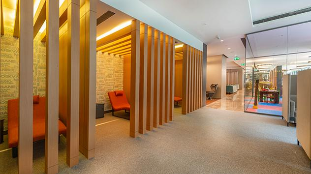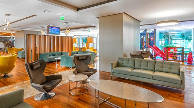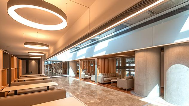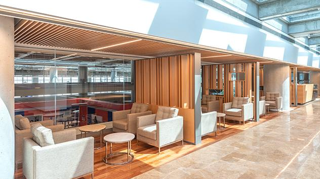 מעבר לבידוק דרכונים, קומה 3, ליד חנויות דיוטי פרי. יש לעקוב אחרי השלטים אל הטרקלין. לטיסות בינלאומיות בלבד.