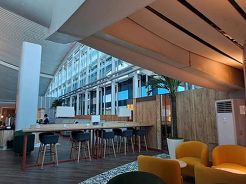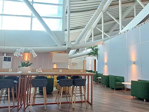 מחוץ לטרמינל - טיסות בינלאומיות יוצאות. לאחר מכס, עלו במעלית או במדרגות לקומה השלישית והטרקלין נמצא בצד שמאל.