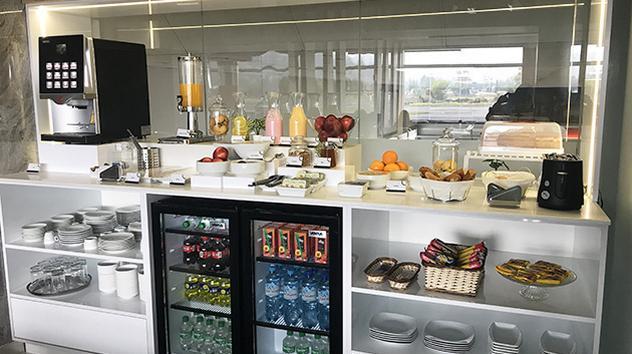 מחוץ לבידוק הביטחוני בקומה השנייה. הטרקלין נמצא בצד השמאלי של אזור השערים. טיסות פנימיות בלבד.