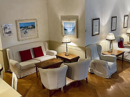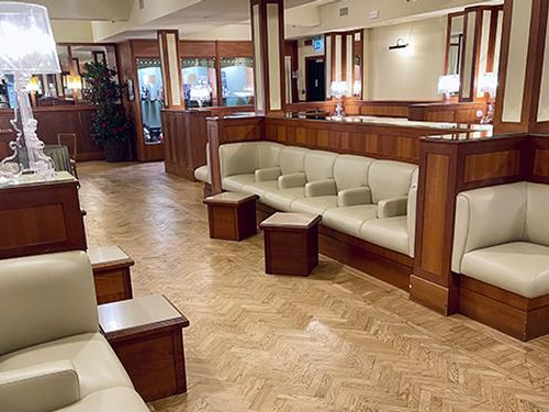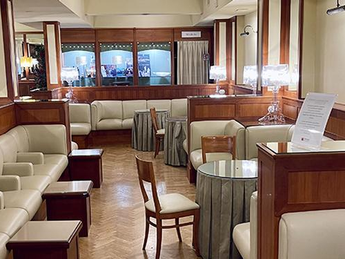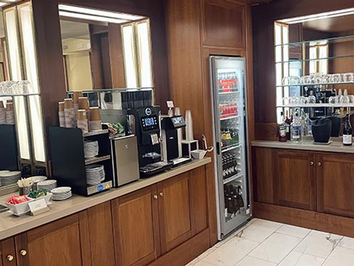 אחרי בידוק הביטחוני, הטרקלין נמצא בקומה הראשונה של היציאות.