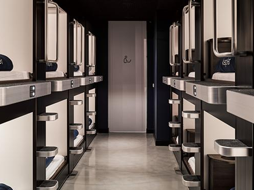 אזור המטוס – יציאות בינלאומיות, לאחר ביקורת דרכונים פנו שמאלה והכניסה ממוקמת ישר קדימה. לנוסעים במעבורת בינלאומית, עלו במדרגות הנעות מקומת הגעות בינלאומיות לקומות היציאות הבינלאומיות בעקבות השלטים 'מעבורת / העברה בינלאומית', והכניסה נמצאת בצד ימין. לטיסות בינלאומיות בלבד. הנוסעים יכולים להשתמש בזכאות הביקור שלהם לשימוש חינמי ביחידות מנוחה אישיות (כפוף לזמינות).