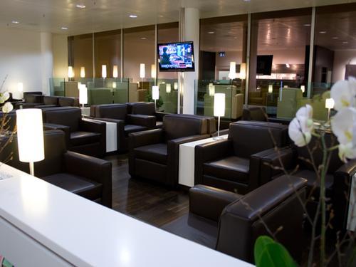 צד האוויר - אחרי בקרת קרני רנטגן, פנה שמאלה ועלה במדרגות הנעות לקומת המזנין, ואז פנה ימינה. הטרקלין נמצא בצד שמאל.