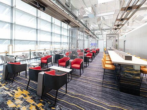 לאחר ביקורת הגבולות, הטרקלין נמצא מול רחוב האוכל הסינגפורי בקומה השלישית באולם המועדים.