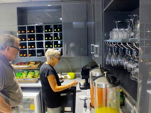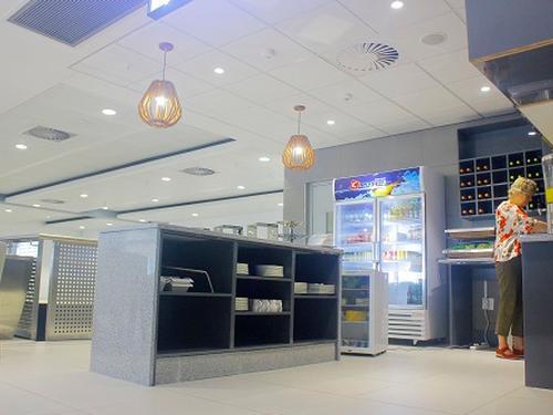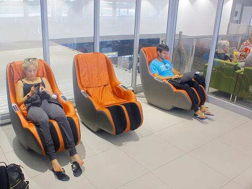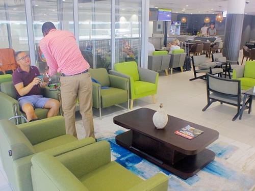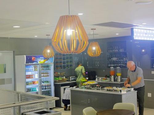 שטח המראה – לאחר ביקורת ביטחונית וביקורת דרכונים, עברו את חנויות הדוטי פרי וקחו את המעלית או את המדרגות מצד שמאל אל הקומה הראשונה. רק לטיסות בינלאומיות.