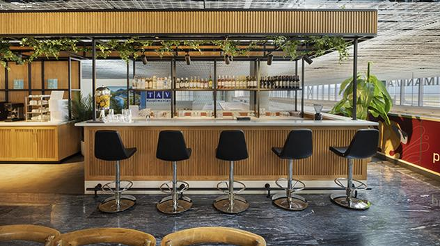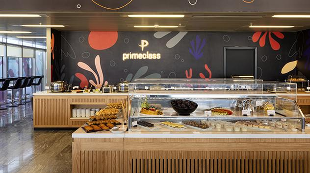 באזור הטרמינל אחרי הצ'ק-אין ובקרת הדרכונים פנה ימינה. המשך לכיוון מבדקי הביטחון המהירים עם מכונת ה-X-ray ופנה ימינה. עלה במעלית או במדרגות הנעות לקומה המיזניין. עקוב אחרי השילוט אל הטרקלין. לשירות טיסות בינלאומיות בלבד.