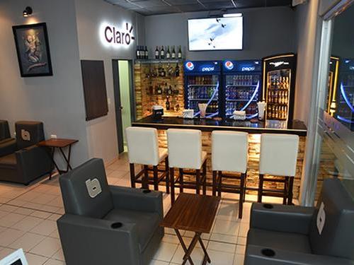 צד אווירי - קומה שנייה, אחרי בדיקות הביטחון ואז אזור העלייה למטוס. מעבר לחנות החינם לטינית בסוף המסדרון ליד שער 2.