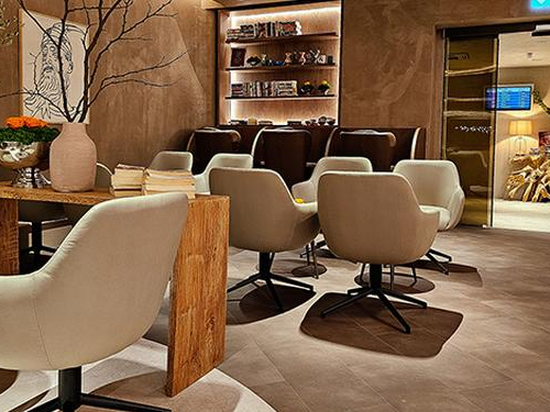 בחוץ למטוסים - עקבו אחר השילוט אל הסלון שממוקם בצד שמאל לאחר הבידוק הביטחוני וביקורת הדרכונים, קומה קרקעית, מול שער 3.