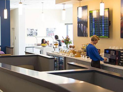 מפלס עליון באזור המטוס. לאחר בדיקות הביטחון, המשיכו אל השער D10 והטרקלין נמצא בסמוך ל'דאנקין דונאטס'. הטרקלין נגיש גם לנוסעים היוצאים מקונקורס E. נא להשאיר זמן מספק כדי לחזור לשער המוצא.