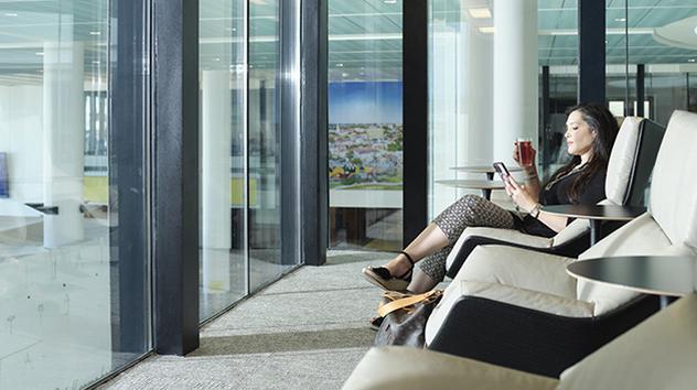 בצד האוויר – לאחר הבידוק הביטחוני, המשיכו לכיוון הטרמינל B. הלאונג' ממוקם בצד שמאל אחרי Chick-fil-A. קחו את המעלית לקומה השלישית כדי להיכנס ללאונג'.