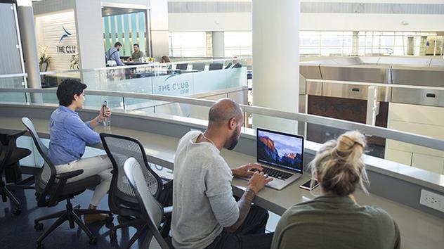 איירסייד - ממוקם בקומת המיזאנין ליד שער 27. נוסעים היוצאים מטרמינלים אחרים יצטרכו להגיע לטרקלין דרך ה-Skylink כדי למנוע מעבר כפול בבידוק הביטחוני. יש לאפשר זמן מספק כדי להגיע לשער המראה.