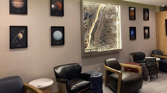 מחוץ לבידוק הביטחוני דרך שער G, פנה ימינה במסדרון החנויות הפטורות ממכס. ירד במדרגות הנעות אל שער H. המשך ללכת ישר כ-15 מטרים, שם נמצאת הטרקלין משמאל.