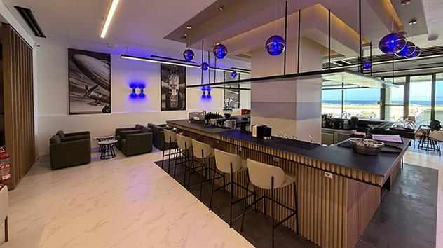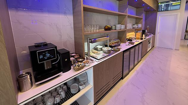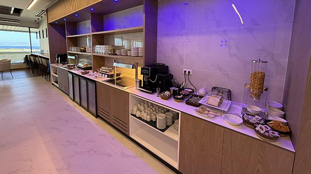 מחוץ לאזור הבידוק - לאחר השלמת הבידוק הביטחוני, המשיכו לאזור הקפיטריה. החלל המפואר נמצא במפלס המזנין.