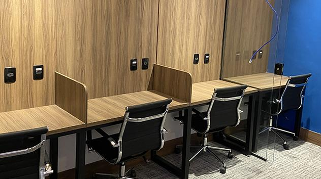 מחוץ לטרמינל – אחרי בדיקת הביטחון, פנו ימינה. המשיכו לאזור המיזניין וסלון ההמתנה נמצא בין סלון ברדסקו לסלון גול. רק לטיסות פנים ולטיסות מעבר.