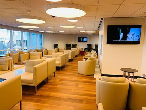 צד האוויר - לאחר נקודת הבידוק של TSA בקונקורס E. הטרקלין נמצא בקומה 2, מעבר למדרגות הנעות בצד שמאל. גישה מטרמינל D - עוברים דרך המחבר אל הטרמינל המרכזי (קונקורס שערי E) והטרקלין ממוקם ישירות ממול.