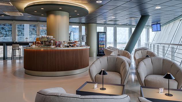 מחוץ לאזור הבידוק - לאחר בדיקות הביטחון, המשיכו ישר ומאחורי מסעדת 'ברי וקיאה', ספגו במעלית או במדרגות אל הקומה הראשונה (מיזנין).